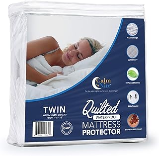 Waterproof Quilted Mattress Protector Twin Size Ultra-Soft, Breathable Bed Cover | Moisture-Wicking Polyester Fabric | Natural Hypoallergenic Sweat & Bed Bug Resistant