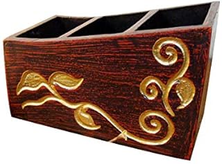 アジアン雑貨 バリ雑貨 スカルプ3段リモコンラック 小物入れ(リーフ柄) リモコンラック ペン立て ペンスタンド 木製
