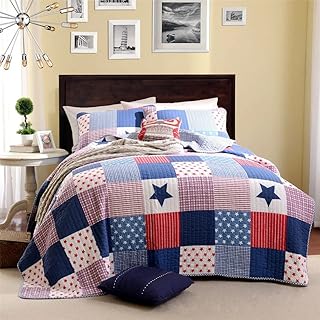 Newrara 3ピースリバーシブルベッドスプレッド、Coverlet、キルトset-queenサイズ90 " x 98 " -blueパッチワークPrints