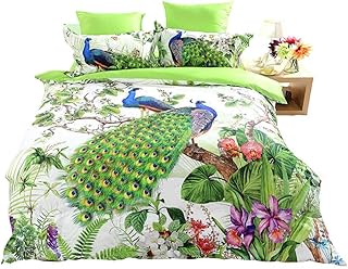 Newrara 100 %コットン3dピーコックPeacockベッドシートセット寝具セット4ピースQueen