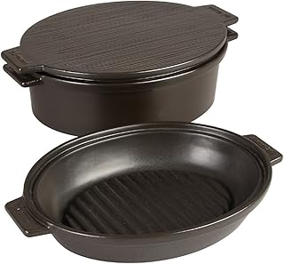 長谷園 土鍋 グリル 鍋 オーバル (浅鍋・深鍋・蓋 セット) 26.5 cm 電子レンジ オーブン 直火 対応 黒 伊賀焼 日本製 レシピ 付 CK-23