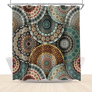 LFEEY ボヘミアン曼荼羅プリントシャワーカーテン 南アジア 装飾 エスニック ヴィンテージ フローラルパターン ペイズリー柄シャワーカーテン インドバスルームセット フック付き 60x72インチ ポリエステル生地 フック付き