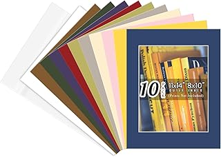 (28cm x 36cm Pack of 10 Mix Colours Complete Set) - Golden State Art, Pack of 10 Mixed Colours Pre-Cut 11x14 Picture Mat for 8x10 Photo with White Core Bevel Cut Mattes Sets. Includes 10 High Premier Acid Free Mats & 10 Backing Board & 10 Clear Bags