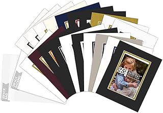 (20cm x 25cm 25-Pack Mix Colours Complete Set) - Golden State Art, Pack of 25 Complete Set, Mix Colours 8x10 Double Mat for 5x7 Photo Pictures with White Core Bevel Cut Mattes. Includes 25 Acid Free Double Mats & 25 Backing Board & 25 Clear Bags