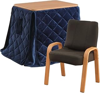 イケヒコ テーブル 机 パーソナルこたつ台 FURA3点セット【こたつ本体NA+椅子+こたつ布団】 ネイビー 約70✕50✕高さ調整可能(2サイズ) 一人暮らし 在宅勤務 新生活 テレワーク
