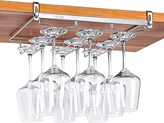 ABINECS ワイングラスホルダー 吊り下げ 穴あけ不要 ネジ止め不要 ステンレス製 棚厚さ調節可 (3列 奥行18cm)