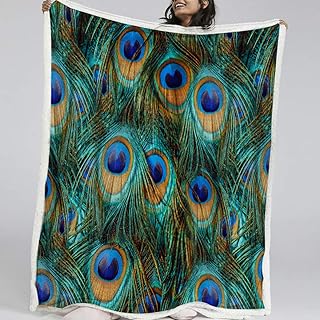 BlessLiving クジャクブランケット ベッドソファー ソフトスローブランケット ホーム装飾 シェルパ フリースブランケット ソファや旅行キャンプに最適 (ツイン 60 x 80インチ)