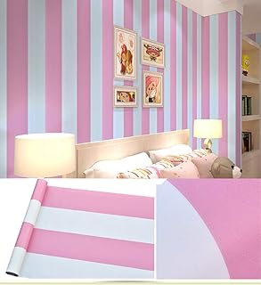 剥がして貼れるビニール 白とピンクのストライプ コンタクトペーパー 壁紙 女の子の子供部屋や寝室の壁 棚 キャビネット ドレッサー 引き出し テーブル 家具 教室 17.7 x 117インチ