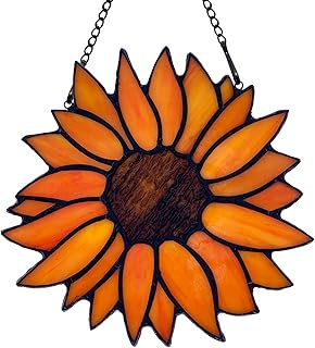HAOSUM サンフラワー ティファニースタイル ステンドグラス ウィンドウ吊り下げパネル ホーム装飾 お母様、友人へのギフト 5.3インチ×6.2インチ