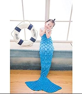 マーメイドブランケット 子供用 人魚毛布 可愛い ひざ掛け 着れる毛布 お昼寝 人魚姫に変身 冷房対策 柔らかい 暖かい 防寒毛布 ブルー
