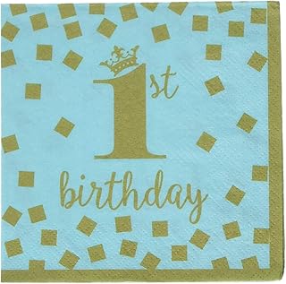Amscan Party Supplies 1歳の誕生日 男の子 飲料用ナプキン 6.5インチ x 6.5インチ マルチカラー