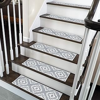 SussexHome テトラ 1色デザイン 9インチ x 28インチ 階段用マット - 70%コットン 滑り止めカーペットストリップ 屋内階段用 - ダブル粘着テープで取り付け簡単 - 安全 エクストラグリップ 13個パック - グレー