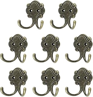 Coshar ブロンズフック アンティークフック ダブルプロングフック タオルコート スカーフ キーとキャップを吊るすのに 8個