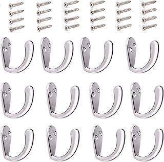 12個パック ホワイトコートフック 壁取り付け ネジ24本付き レトロダブルフック ユーティリティフック コート、スカーフ、バッグ、タオル、キー、キャップ、カップ、帽子用