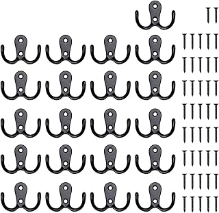 20個パック 高耐久 ダブルプロング コートフック 壁取り付け 40本のネジ付き レトロ ダブルローブフック ユーティリティフック コート スカーフ バッグ タオル 帽子 バックパック 鍵用 (ブラック)