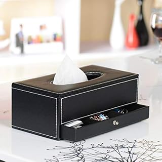 Ansimple ティッシュケース ティッシュボックス 引き出し付き 収納ボックス 収納ケース 小物入れ 整理ボックス PUレザー オフィス用品 リビング用品 多機能 インテリア 雑貨 (Aタイプ、ブラック)
