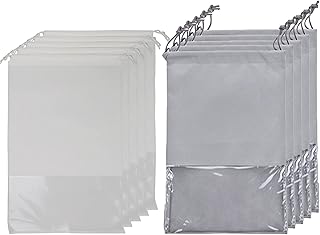 靴収納袋 10枚セット 多機能収納ポーチ 不織布 巾着袋 透明窓付き 中身が見える 靴袋 無地 シューズサック 軽量 戸外運動 シューズ タオル 服入れ 防塵 旅行 出張 家庭収納 32*44cm (ホワイト5枚+グレー5枚)