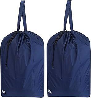 UniLiGis 破れにくいナイロンランドリーバッグ ハンドル付き (2パック) 巾着開閉式 旅行用 汚れた衣類バッグ ほとんどの洗濯物かごと仕分けに 27.5x34.5インチ ネイビーブルー
