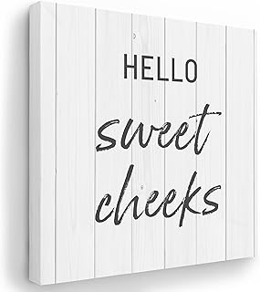 InsightOut 素朴なバスルームキャンバスウォールアート 12インチ×12インチ ハローキティ ファームハウス装飾 面白い引用句 バスルーム装飾 バスルームへの素敵なギフト 額入りウォールアート