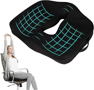 オフィスチェア シートクッション 快適な低反発素材 デスクチェア クッション 車 尾骨シートクッション 車いす 低反発素材枕 滑り止め付き 腰 尾骨 坐骨神経痛 ブラック