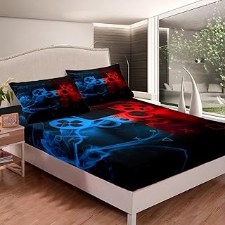 Erosebridal ティーンボーイズ ゲームルーム装飾 モダンゲームパッド ボックスシーツ クイーンサイズ ユースキッズ ゲーマーベッドシーツ ヤングマン ノスタルジック ゲームコンソール 寝具セット ユースレトロゲーム ベッドルーム装飾 レッド ブルー