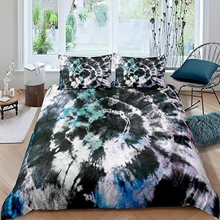 Erosebridal タイダイ柄掛け布団カバー クイーンサイズ タトゥー掛け布団カバー エスニック寝具セット 子供 男の子 女の子 ティーン 大人用 トリッピー ブラック ホワイト スパイラル渦巻き 掛け布団カバー 寝室 寮の装飾用