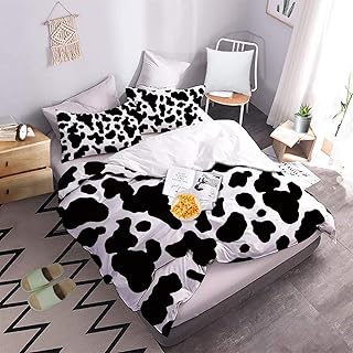 KING DARE ブラックとホワイト 牛柄プリント 寝具 羽毛布団カバー3点セット ファスナー付き ソフトで快適 通気性 キング(104インチ x 90インチ)