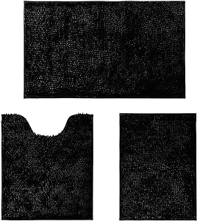 HOMEIDEAS ベルベットソフトバター シェニール織 バスルームラグ3点セット ブラック 3X 吸収性 スパ シャギーバスラグ ノンスリップ 洗えるバスマット 浴室 浴槽 シャワー用