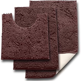 Wurkkos バスルームラグ3点セット 滑り止め 高吸収性 シャギーシェニール織バスマットセット 柔らかく丈夫 洗濯機洗い可能 プラシ天カーペット バスルーム トイレ 浴槽 シャワー用 (ブラウン)