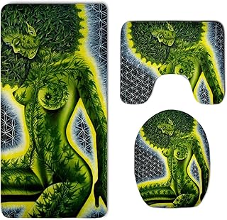 HOMESTORES バスルームラグ3点セット - 美しい緑のサイケデリックなマリファナの葉 滑り止め トイレ バスラグマット U型蓋 シャワースパ用輪郭カバー