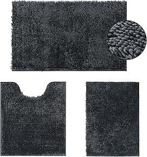 バスラグセット バスルーム シェニール織 バスルームマット ラグセット 滑り止め グレー バスルームラグ3点セット (ダーク、17 x 24|20 x 24|20 x 32インチ)