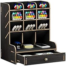 Catekro 木製デスクトップオーガナイザー 引き出し付き デスクオーガナイザー アートサプライオーガナイザー デスクアート用品オーガナイザー デスク用鉛筆ホルダー ホームオフィス用品ストレージ ラック付き (ブラック)